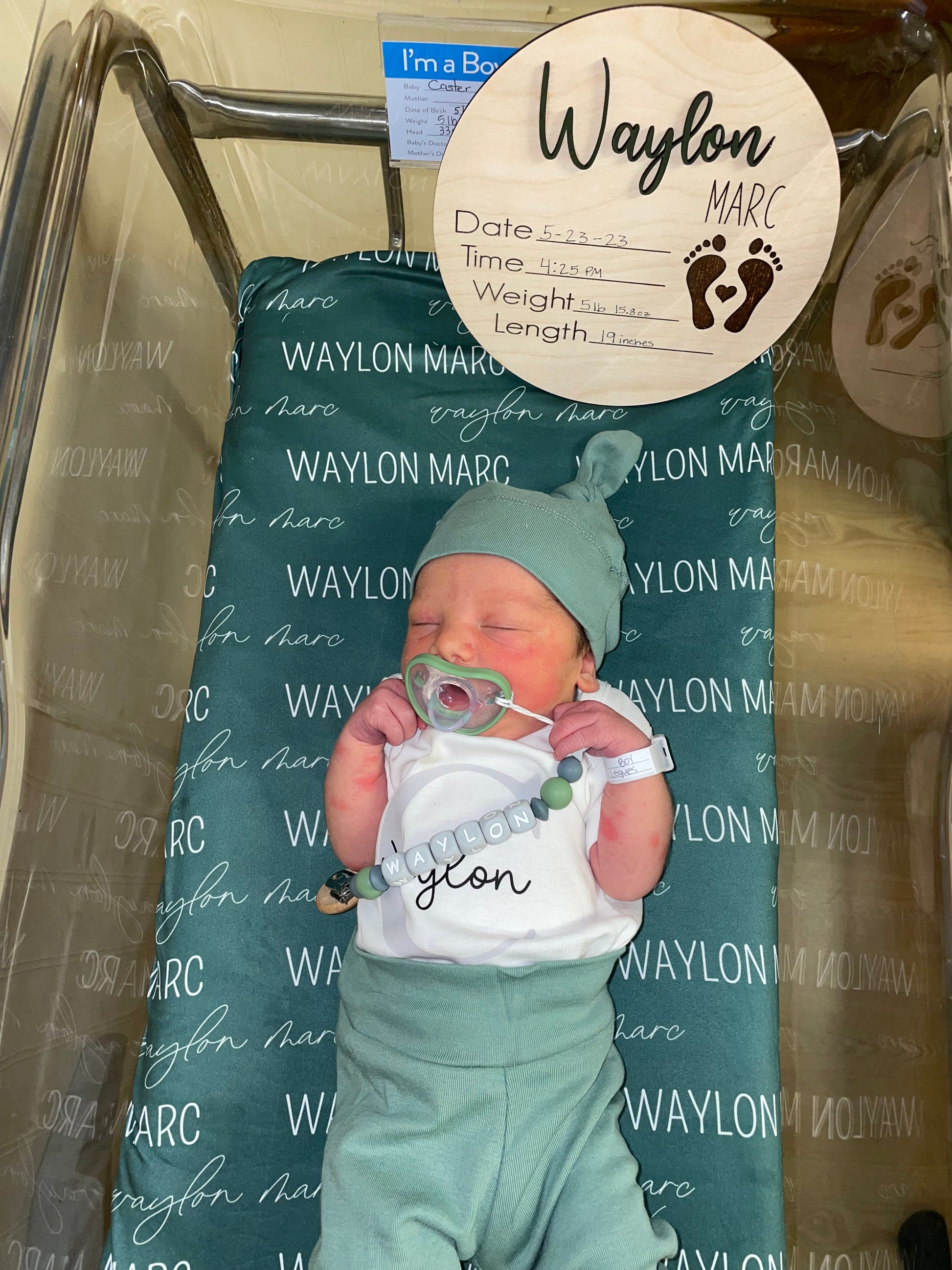 • Personalized with baby’s first and middle name